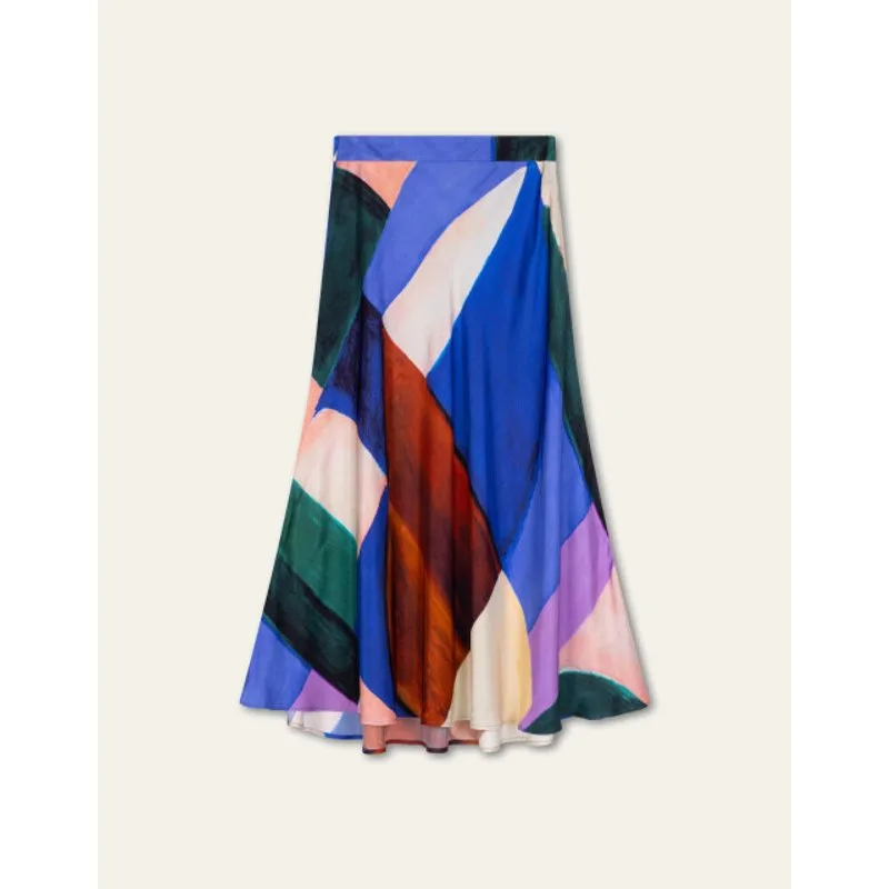 Deze maxi-rok heeft een platte taille, blinde rits in de zij en loopt wijd uit. De print Highland Hues met abstracte vormen en warm kleurenspel straalt extra door de keuze voor viscose. -100% Viscose -Gemaakt in Turkije -Het model is 176cm en draagt maat 36