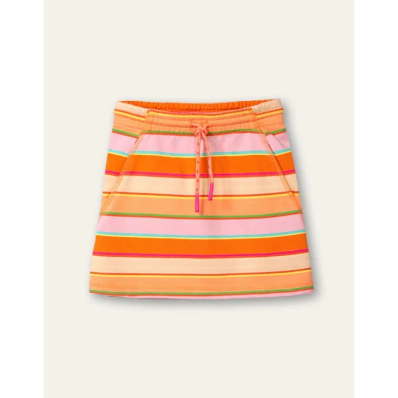 Doe lekker je eigen ding met dit vrolijke, stoere rokje gemaakt van zachte sweat-stof met kleurrijke strepen. Heeft zakjes en een elastische band met drawstring.