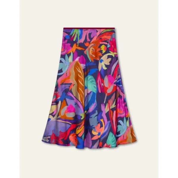 Deze midi rok heeft een blinde rits in de zij en een brede elastische tailleband voor een comfortabele fit. Op deze rok straalt de floral print Loch Lily waarin bloemen bloeien op een donkere, dromerige achtergrond. -100% Viscose -Gemaakt in Polen -Het model is 176cm en draagt maat 36