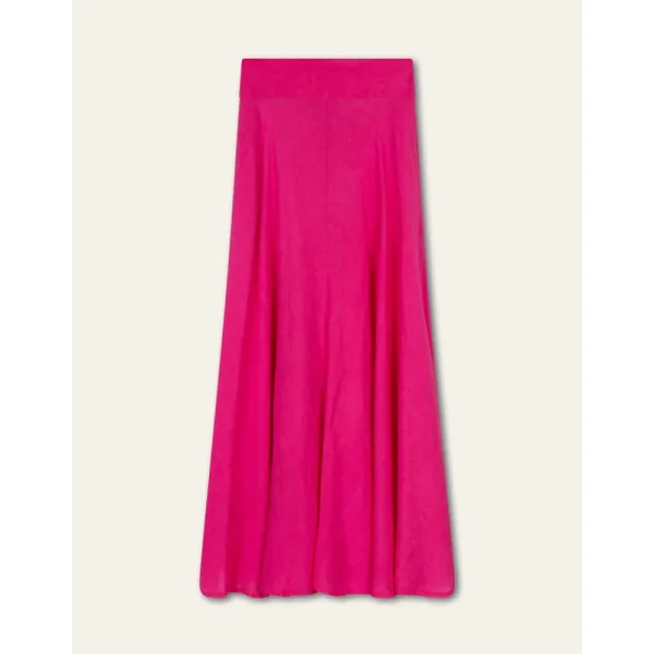 Deze maxi rok is gemaakt van vier panelen voor een zwierige, wijde fit vanaf de heupen. Hierdoor draait de rok mooi uit en we raden aan deze niet op te hangen maar op een plank te leggen. De rok heeft aan de achterkant elastiek met een verborgen rits en subtiele zakken in de zij. - 55% Linnen, 45% Viscose - Gemaakt in India - Het model is 178cm en draagt maat 36