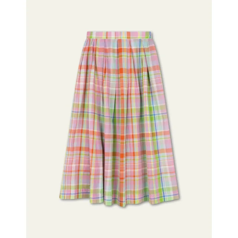 Katoenen rok op enkellengte met het vrolijke geruite dessin Merry Meadow Check, het nodigt je uit om de zomer te vieren. - 100% Katoen - Gemaakt in India - Het model is 180cm en draagt maat 36