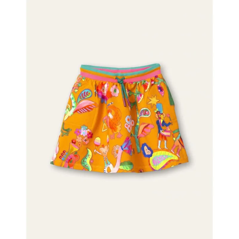 Een feestelijke parade van muziekmakers met vrolijke bloemen en planten pronken op dit sweatstof rokje. In de zij verstevigde zakjes en in de taille een matching elastische band met Oilily-koord. - Organisch katoen met stretch -Zakjes in de zij - Regular fit - Gemaakt in Griekenland
