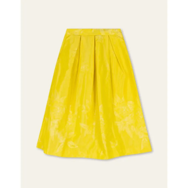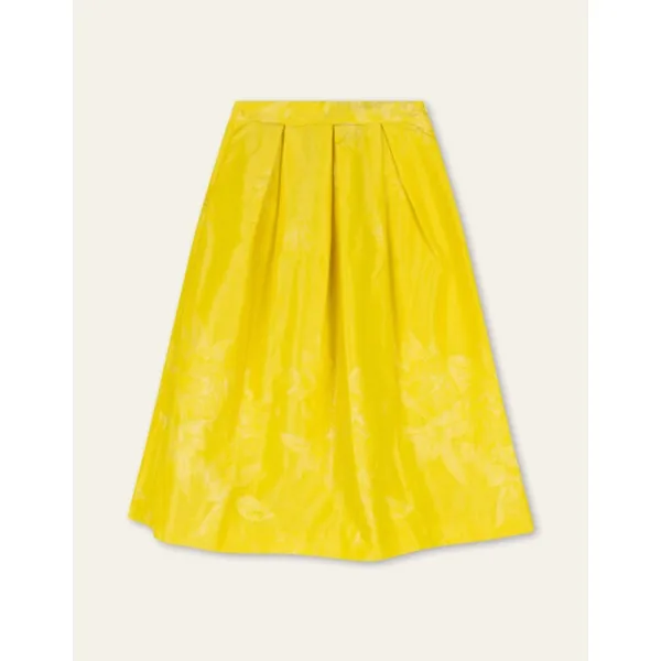Deze rok van 63% polyester en 37% polyamide valt prachtig door de mooie, zorgvuldig gevouwen plooien. De subtiele glans van de stof geeft een luxueuze uitstraling, terwijl de plooien zorgen voor een speels en elegant effect. - 63% polyester en 37% polyamide - Blinde rits - Het model is 175cm en draagt maat 36 - Gemaakt in Portugal