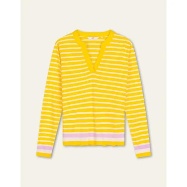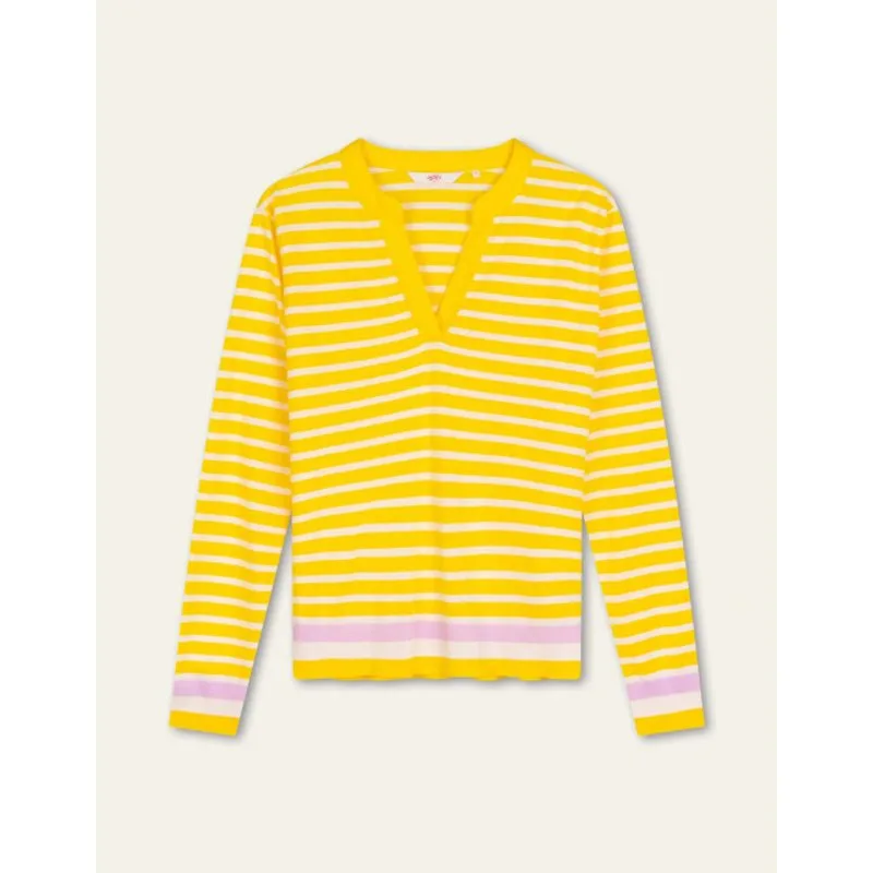 Zacht, licht en luxe. Zo voelt en draagt deze aantrekkelijke lange mouwen top met open V-hals. Aan de onderkant zijn de geribbelde strepen ingebreid en dat zorgt voor een premium afwerking. Een heerlijk item voor vele momenten. - 97% Lyocell - Regular fit - Gemaakt in Portugal
