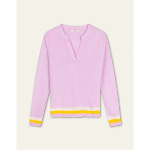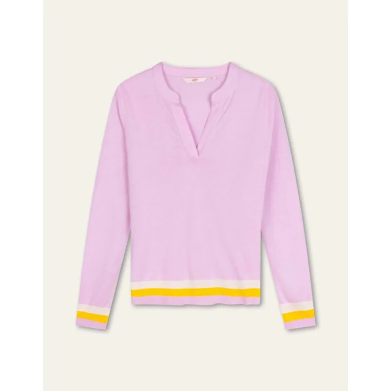 Zacht, licht en luxe. Zo voelt en draagt deze aantrekkelijke lange mouwen top met open V-hals. Aan de onderkant zijn de geribbelde strepen ingebreid en dat zorgt voor een premium afwerking. Een heerlijk item voor vele momenten. - 97% Lyocell - Regular fit - Gemaakt in Portugal