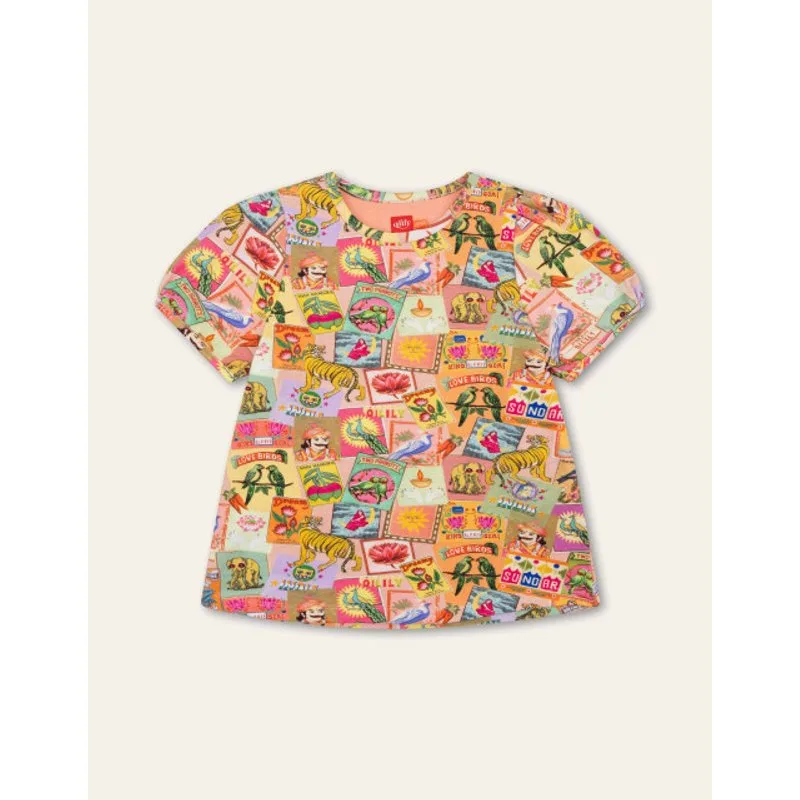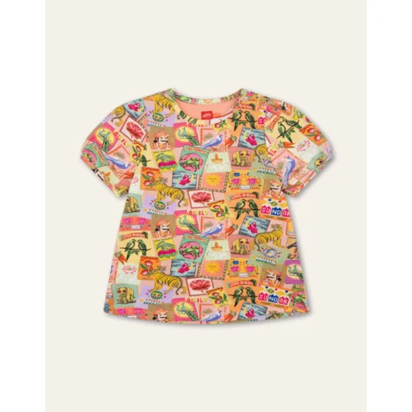 Dit t-shirt is superzacht en comfortabel. De print is geïnspireerd op Indiase luciferdoosjes — kleine kunstwerkjes vol kleur en details. -94% organisch katoen, 6% elastaan -Gemaakt in Portugal