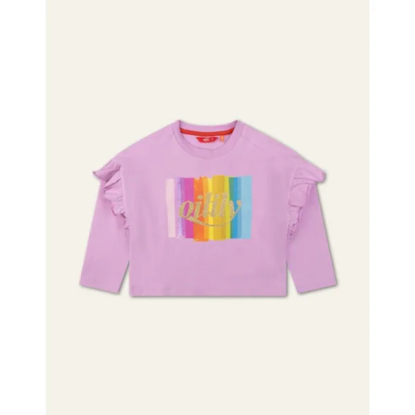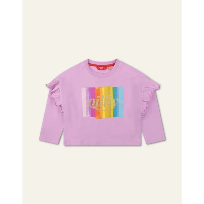 Speelse top met de grote ruches langs de voorkant en de vrolijke regenboog strepen als backdrop van onze Oilily print. - Organisch Katoen - Loose fit - Gemaakt in Portugal