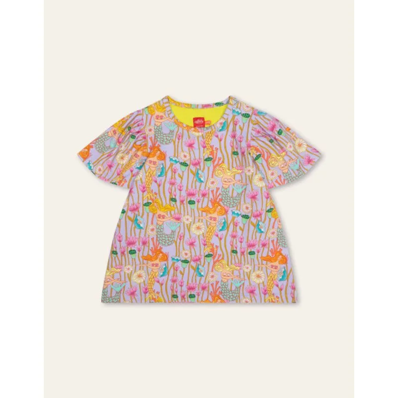 Tussen de lotusbloemen en het koraal zwemmen kleurrijke zeemeerminnen, samen vormen ze dessin Lotus Mermaid. Vind jouw favoriete zeemeermin op dit t-shirt en neem haar mee op al zomerse avonturen. - 94% Organic Katoen, 6% Elastaan - Gemaakt in Portugal