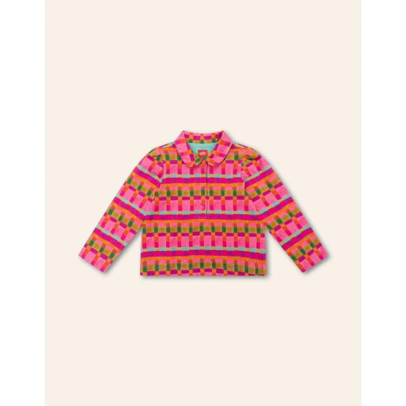 Digitaal tekenden we deze blije ruit die we Crayon Check hebben genoemd. Het staat op en top vrolijk met al die gezellige kleuren. Dit shirt heeft lange mouwen en kraag met knoopsluiting. -94% Organic Cotton, 6% Elastaan -Gemaakt in Portugal