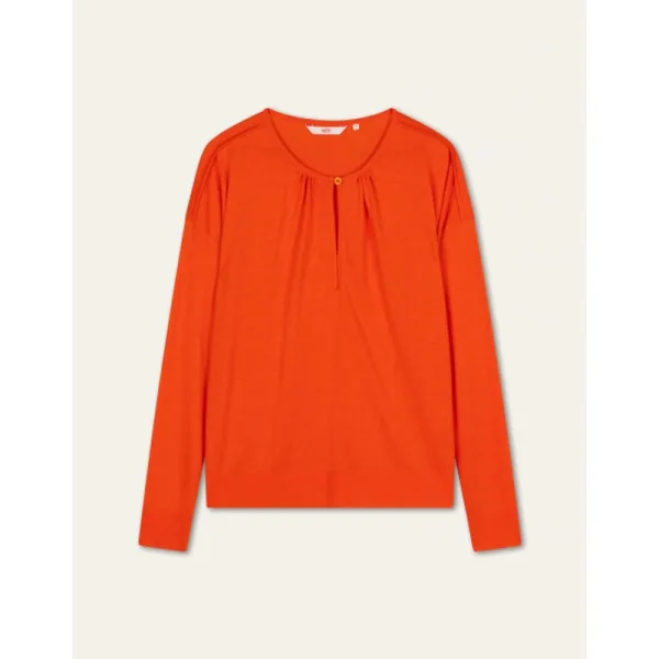 Upgrade je basics met deze heerlijke top gemaakt van natuurvriendelijk Lyocell. Basic is alleen de kleur want met een naar voren gelegde schoudernaad met bies, dropped shoulder en lief klein knoopje is dit een ware luxe basic. - Lyocell (natuurlijk, gerecycled materiaal) met Katoen - Gemaakt in Portugal