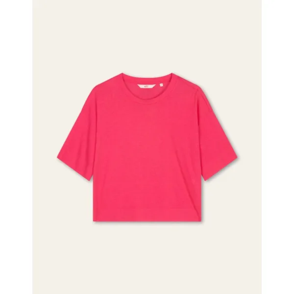 Shirt met een geribbelde onderkant en aangenaaide boord. De mouwen en zoom zijn fully fashioned gebreid en door het gebruik van yarn-dye komt de kleur prachtig uit. - 67% Lyocell, 33% Katoen - Gemaakt in Portugal - Het model is 178cm en draagt maat 36