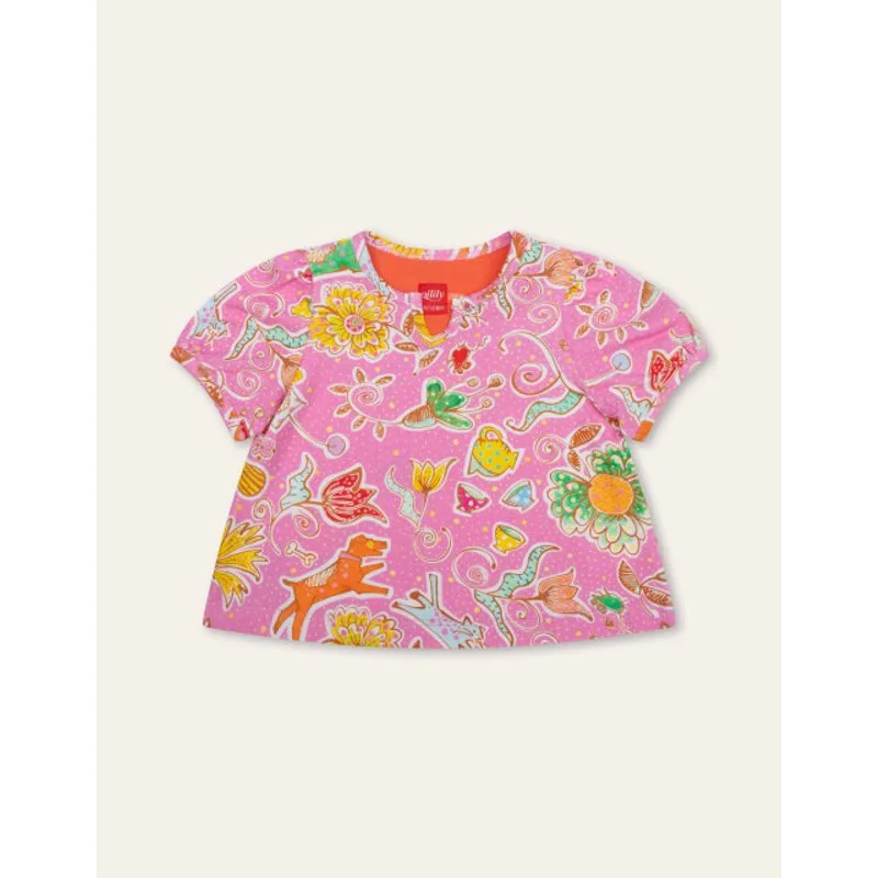 Dessin Oilily Vintage is uit 1992 en we hebben het verfrist door stiften met waterverf te combineren. Het staat zoet op dit vrolijke zomerse t-shirt. - 94% Organic Cotton, 6% Elastane - Gemaakt in Portugal