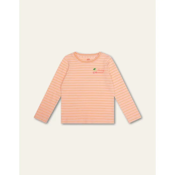 Yarn-dye shirt met lange mouwen en dikke met dunne streepjes die mooi verlopen. Het leuke artwork van de kers is het toefje op het shirt. - 100% Katoen - Gemaakt in India