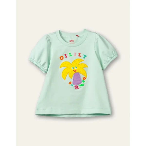 Je hebt altijd gezellige vriendjes bij je met dit shirt. De ondeugende palmboom en zeester wonen tussen de bloemetjes en Oilily regenboog. - Regular fit - Organisch katoen met stretch - Met pofmouwen - Gemaakt in Griekenland