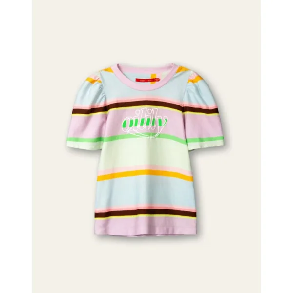 Voel je zo licht als een zomers briesje in dit meerkleurige gestreepte t-shirt met pofmouwtjes. Losse fit, 3D-Oilily logo aan de voorkant en een vintage logo label aan de achterkant.