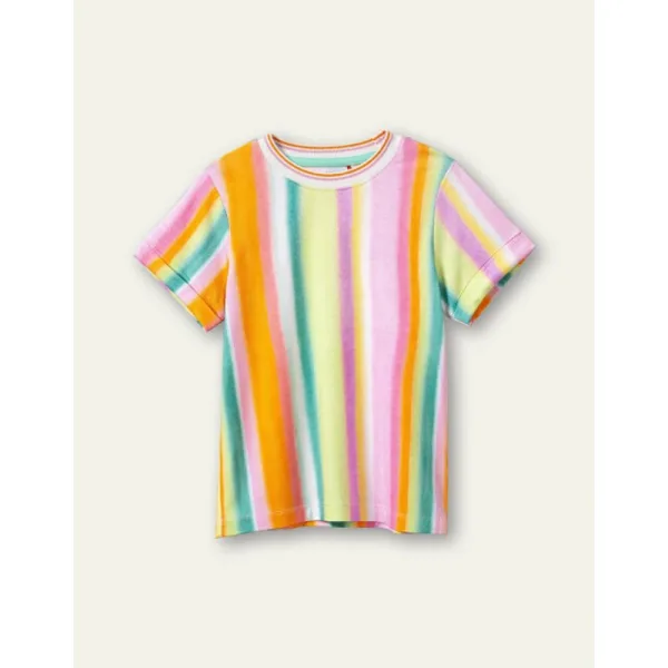 Deze aquarelstrepen vloeien als een lekkend waterijsje in elkaar over. Met sporty crewneck en opgerolde mouwtjes. - Viscose met elastaan - Relaxed fit - Gemaakt in Griekenland