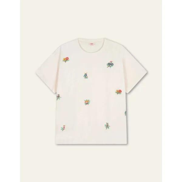 De boxy fit van dit T-shirt vormt een mooi canvas voor de bijzondere geborduurde details van pailletten en kralen. Een shirt om constant iets moois op te ontdekken tijdens zachte lentedagen. - 100% Organic GOTS Katoen - Gemaakt in India - Het model is 178cm en draagt maat 36