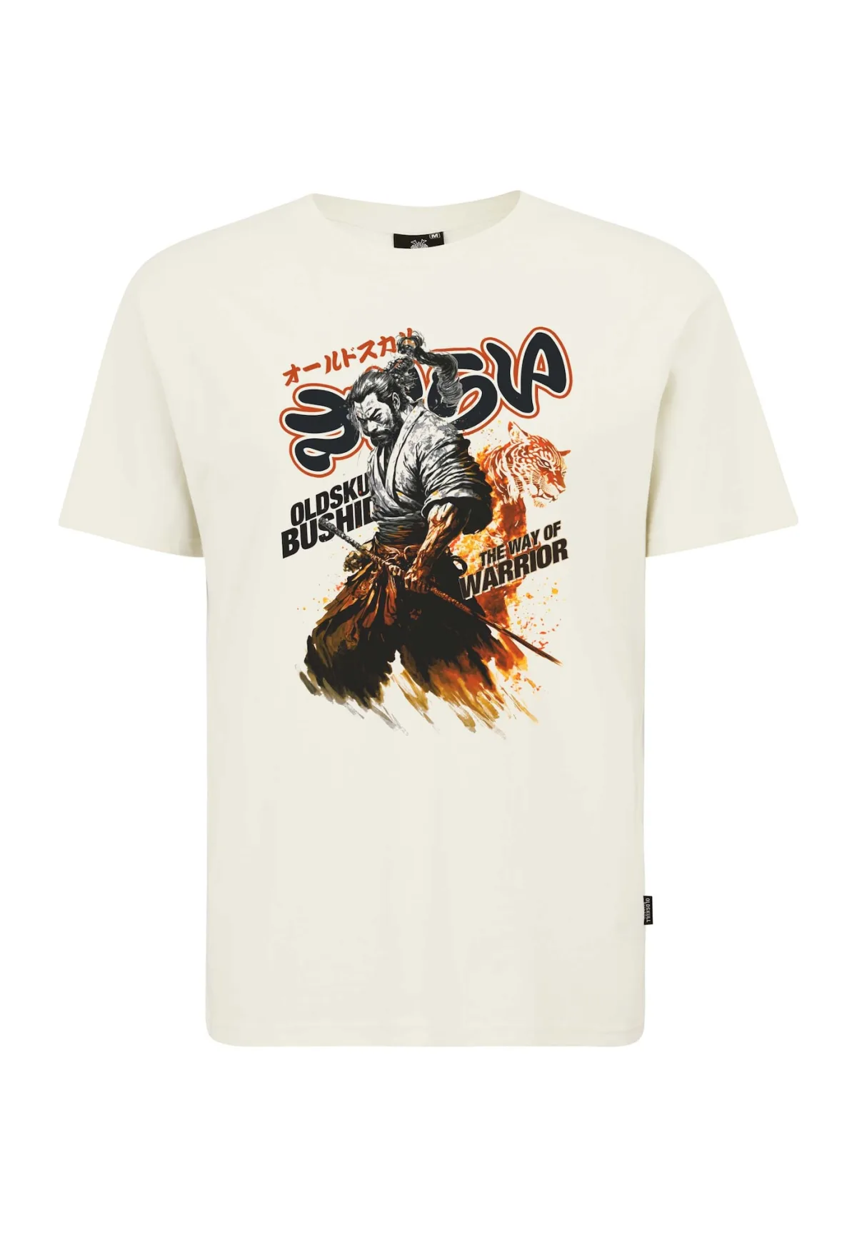 Oldskull Shirt ‘Japanese Samurai Warrior’ lichtbruin / zwart / offwhite