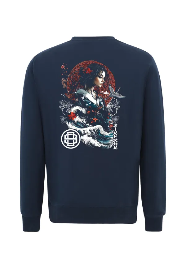 Oldskull Sweatshirt ‘Asian Blossom Queen Logo Graphic’ donkerblauw