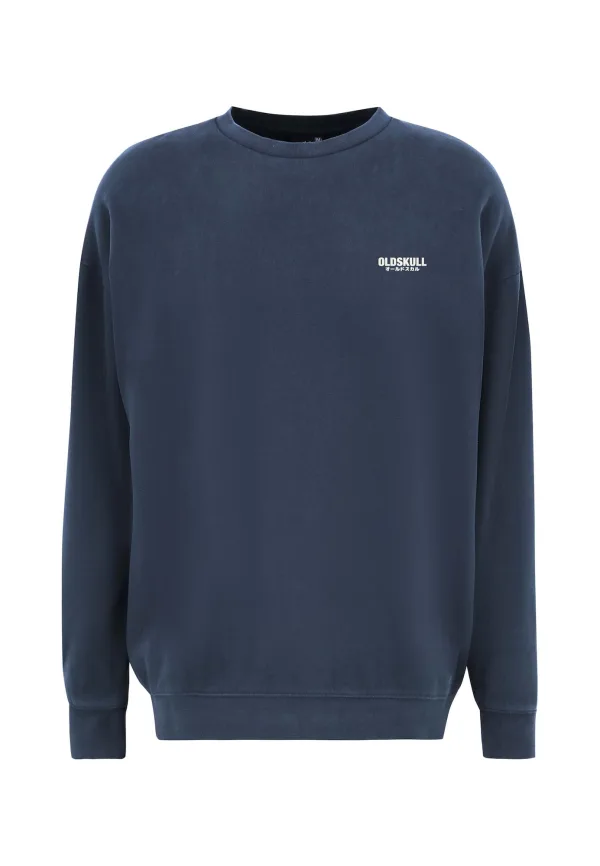 Oldskull Sweatshirt ‘Peach Dyed Basic’ donkerblauw / wit