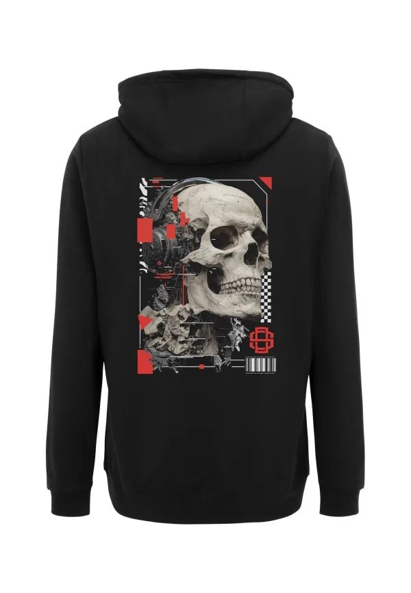 Oldskull Sweatshirt ‘Xtreme futuristic skull headphones graphic’ zwart