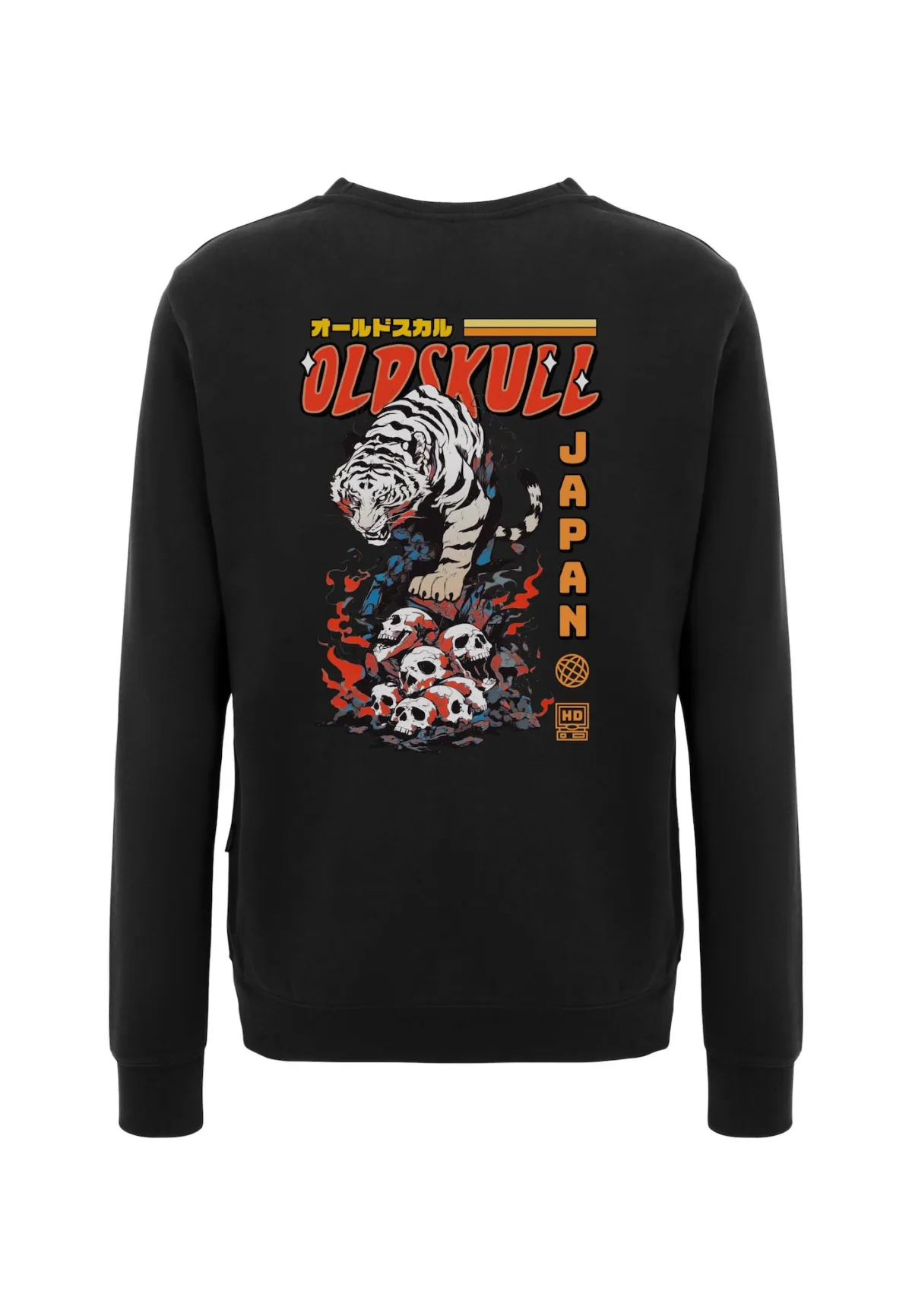 Oldskull Sweatshirt ‘Xtreme Tattoo Tiger Skull’ mosterd / rood / zwart