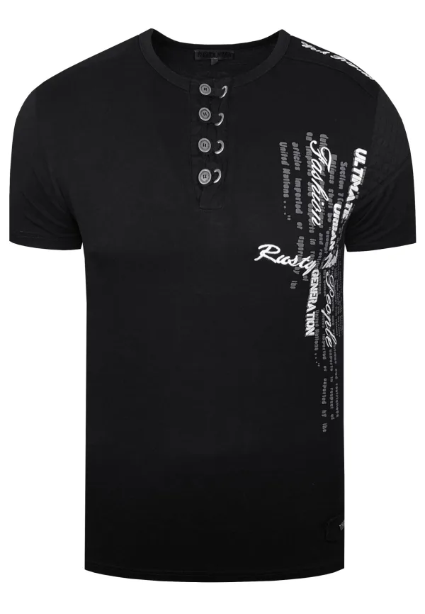 Olie-gewassen T-shirt met knoopsluiting Prijzen