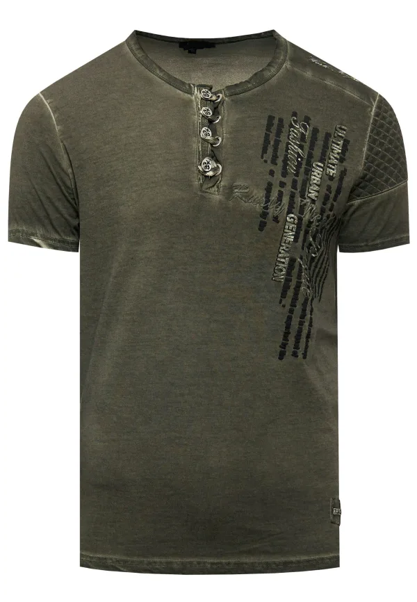 Olie-gewassen T-shirt met knoopsluiting Prijzen
