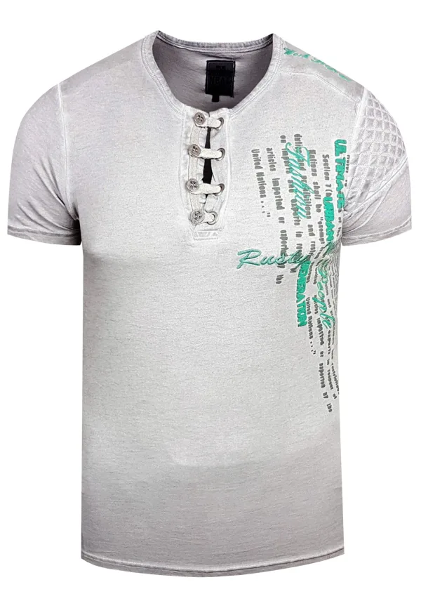 Olie-gewassen T-shirt met knoopsluiting Prijzen