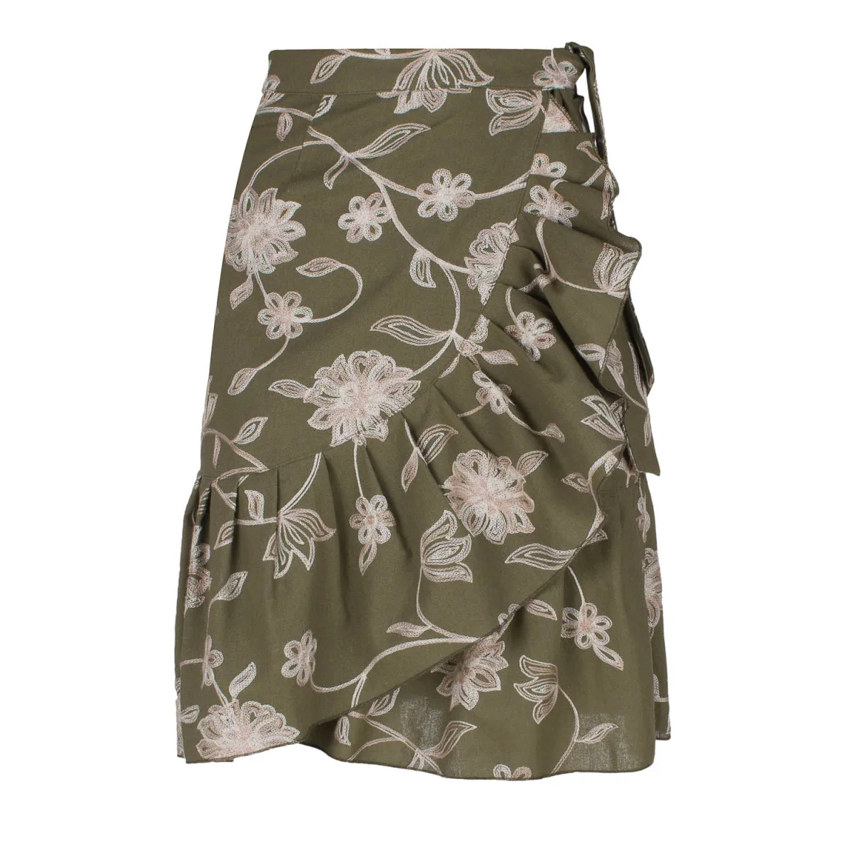 - Bij to-be-dressed.nl kun je Olijf Geborduurde Bloemen Wikkel Ruffle Rok kopen voor slechts €40,91