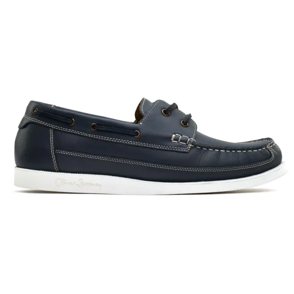 Geef je look een opfrisbeurt en geef je outfit een vleugje maritieme stijl met de marineblauwe bootschoenen Cincinnati van Oliver Sweeney. Ze zijn ideaal voor die smart-casual dagen in de stad, een winderige wandeling langs de kust of een casual avond met vrienden. Het superieure leren bovenwerk is van premium kwaliteit en zit vol met stijlvolle, opvallende designdetails. De instapper in mocassinstijl heeft een duurzame, witte rubberen zool, witte contrasterende stiksels en metalen veterogen om deze luxe, nautische look compleet te maken.