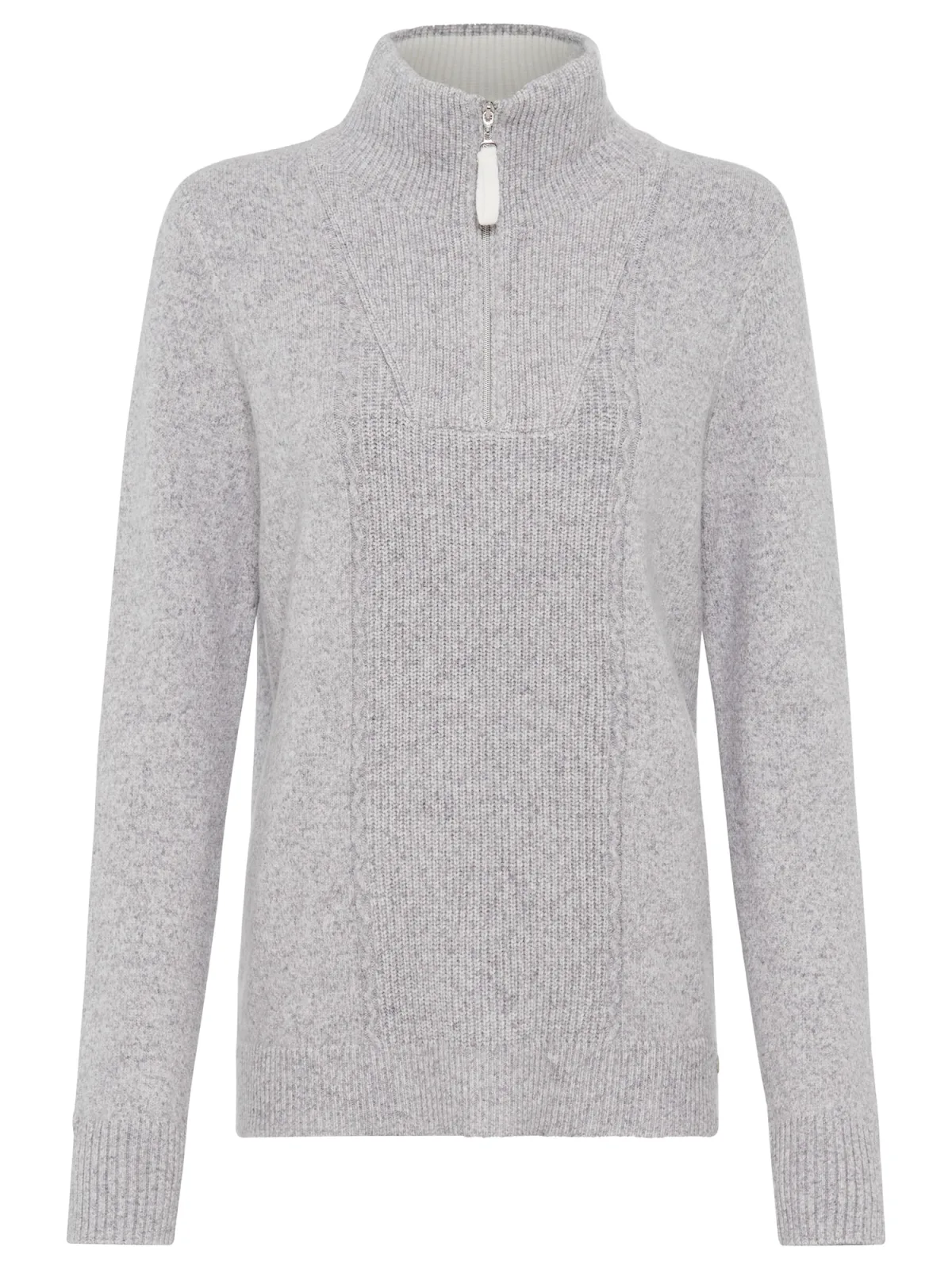 Design: Geribd ceintuurtje, Geribbeld gebreid, Halve rits; Type sluiting: Ritssluiting; Materiaal: Knitwear; Halstype: Schipperskraag; Motief: Mélange; Extra's: Gestructureerd oppervlak; Pasvorm: Normale pasvorm; Armlengte: Lange mouw; Lengte: Normale lengte