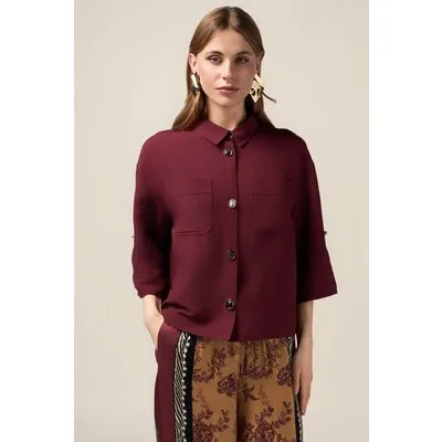 Oltre Boxy Linen Blend Jacket Burgundy
