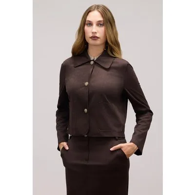 Oltre Boxy Suede Effect Jacket Brown