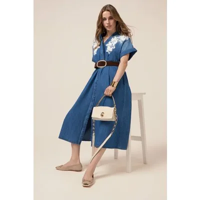 Oltre Denim Shirt With Embroidery Light Blue Prijzen