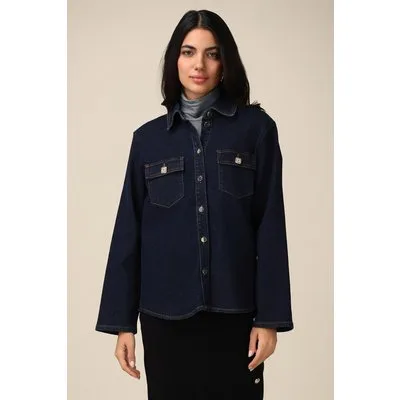 Oltre Denim Shirt With Jewel Buttons Blue