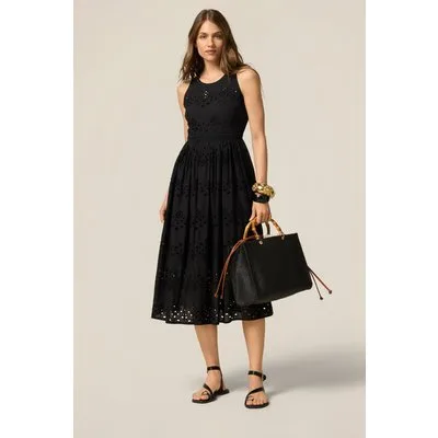 Oltre Flared Dress In Broderie Anglaise Lace Black