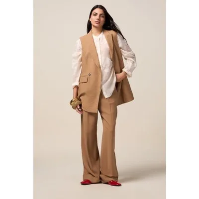 Oltre Fluid Viscose Blend Vest Beige Prijzen