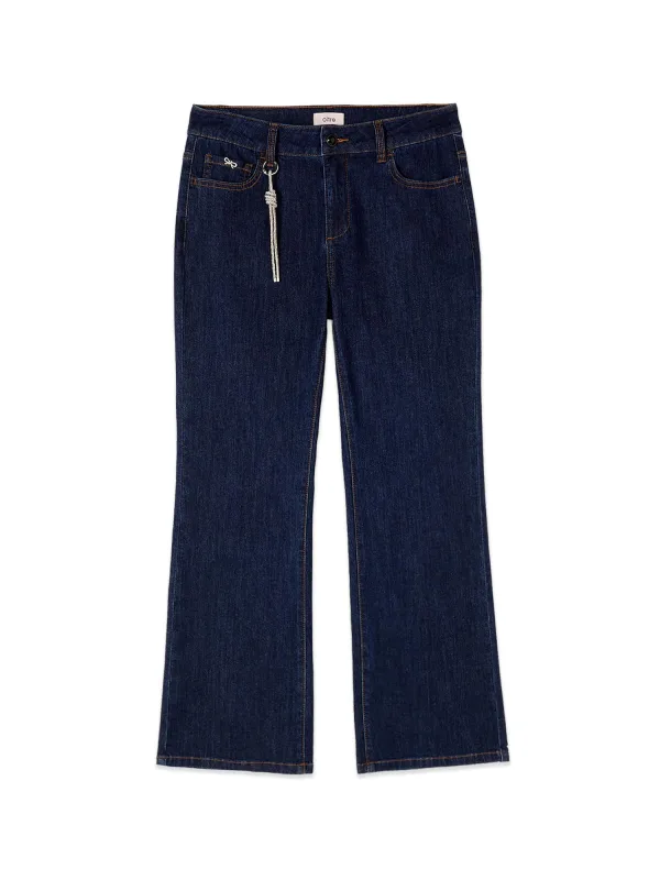 Materiaal: Denim; Motief: Effen; Wassing: Blauw denim; Lengte: 7/8 lengte; Pasvorm: Flared; Taillehoogte: Mid waist