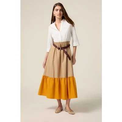 Oltre Long Color Block Dress Orange