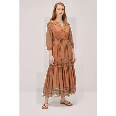 Oltre Long Dress With Crochet Inserts Natural Prijzen