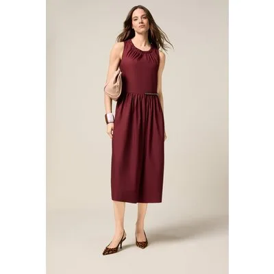 Oltre Midi Flare Dress In Poplin Burgundy