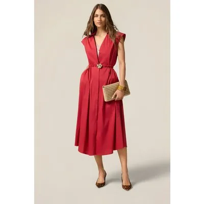 Oltre Midi Shirtdress In Poplin With Belt Red