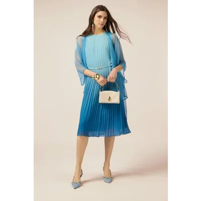 Oltre Ombre Pleated Midi Dress Light Blue