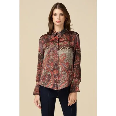 Oltre Patterned Satin Shirt Brown