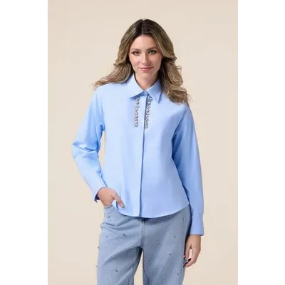 Oltre Shirt With Jewel Embroidery Light Blue