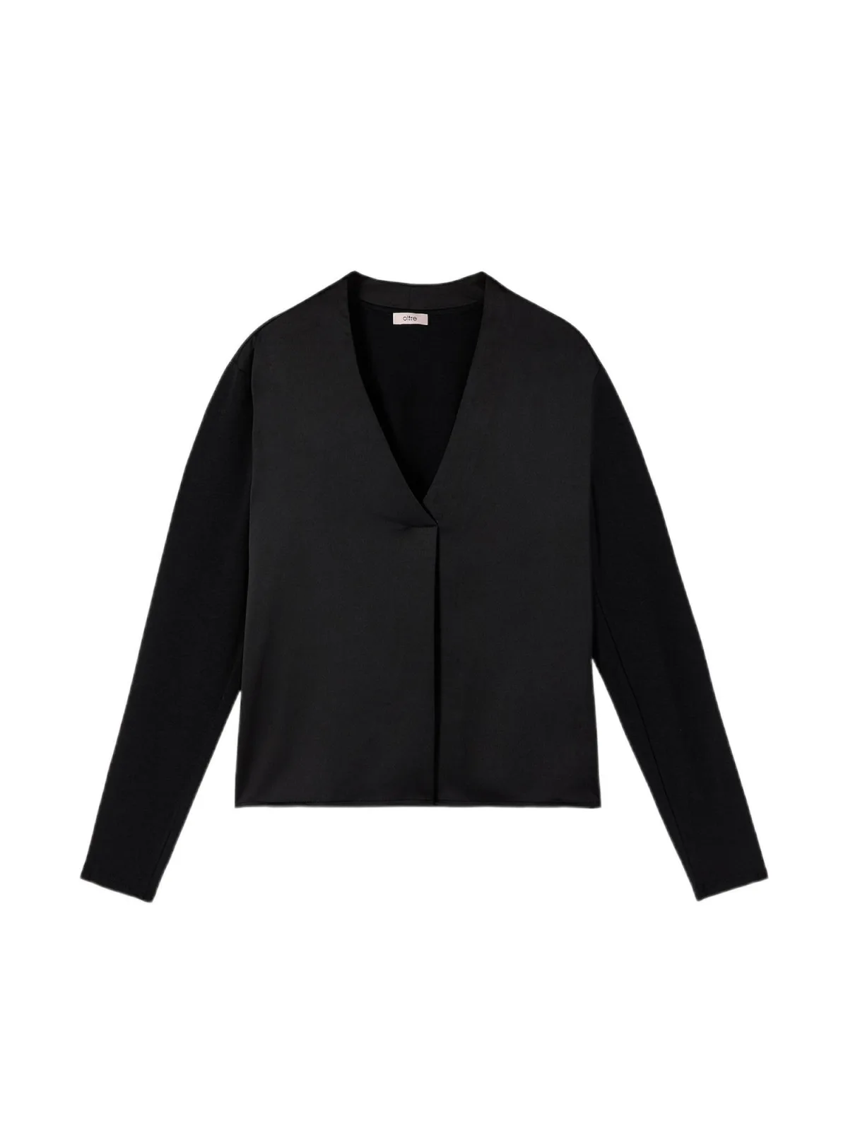 Materiaal: Jersey; Halstype: V-hals; Motief: Effen; Pasvorm: Normale pasvorm; Armlengte: Lange mouw; Lengte: Korte pasvorm
