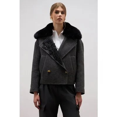 Oltre Short Coat With Jewel Patch Grey