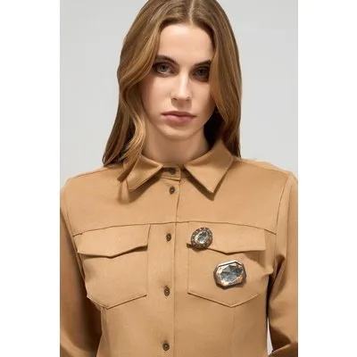 Oltre Suede-effect Shirt With Pins Brown