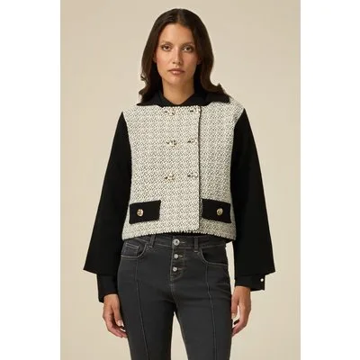 Oltre Wool Blend Knit Boxy Jacket Black Prijzen